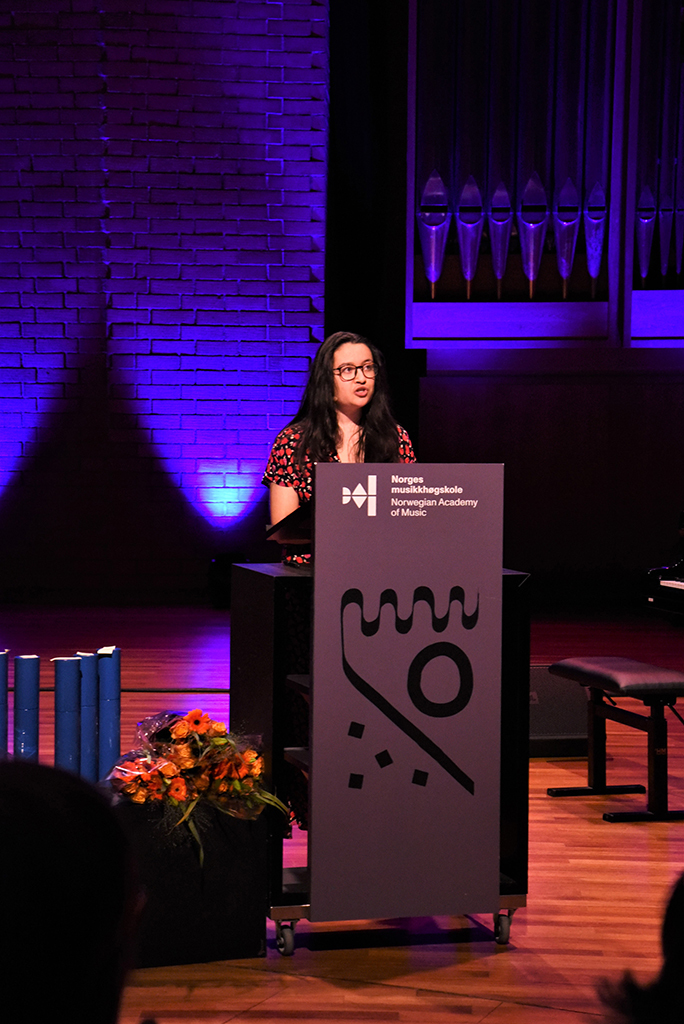 To all of you, I would like to say that in all celebrations of the Norwegian Academy of Music and each other, I hope you celebrate yourselves first. Take your place in your own education; all this is actually for you as students, and I hope you have a lot of fun, both in the practice room and hopefully with many new friends.